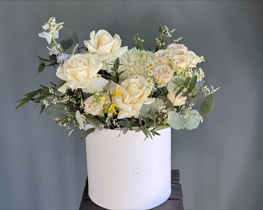 Цветы в коробке, цветочные композиции, цветы в корзине