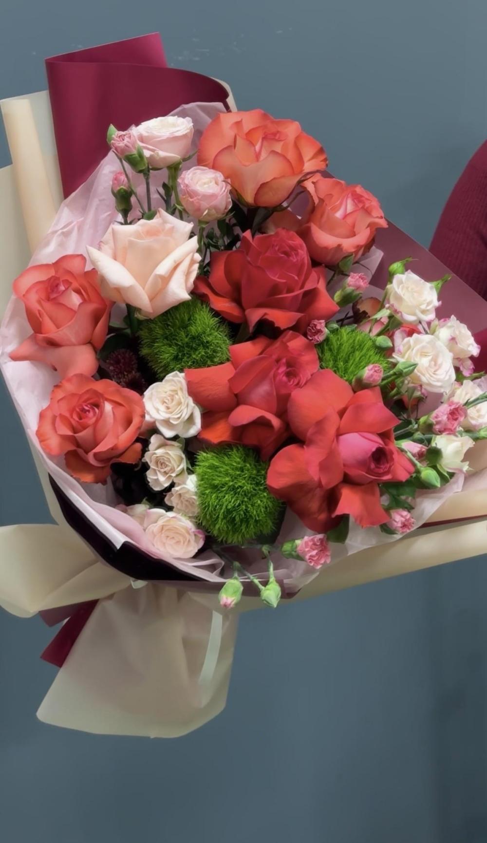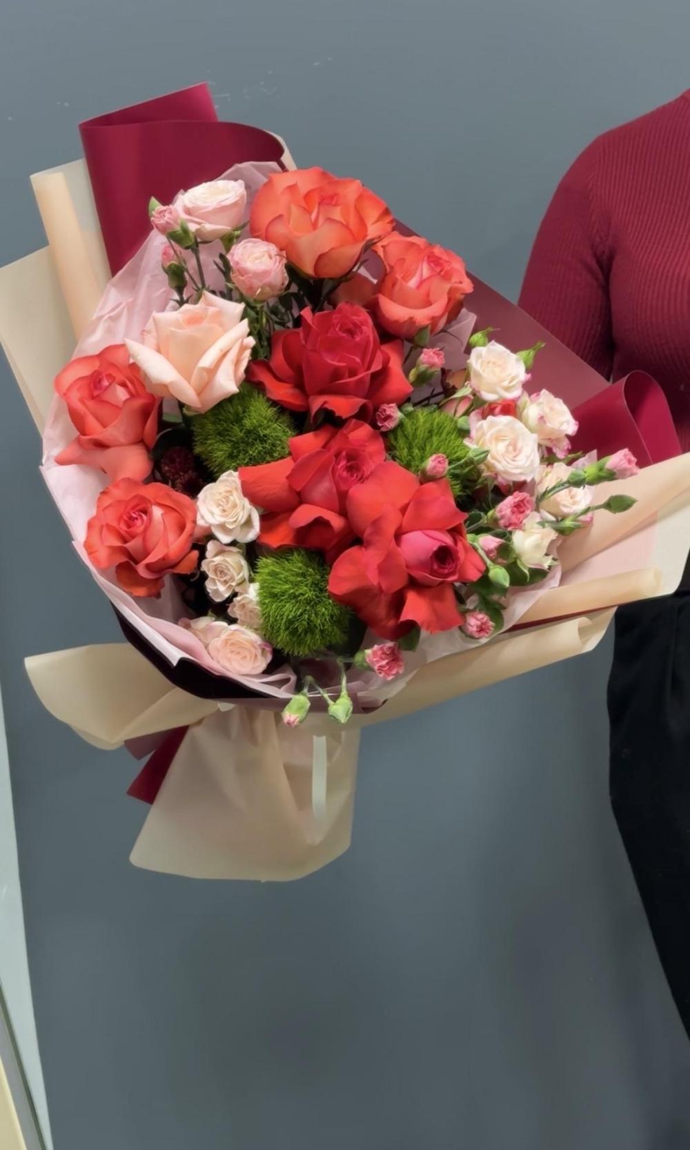 Трогательная композиция из ярких оттенков роз!
